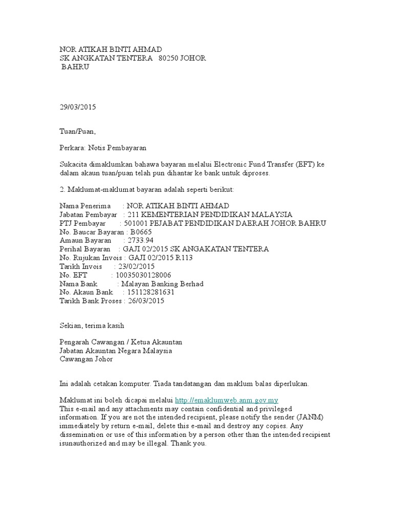 Sebarang pertanyaan boleh hubungi talian 07-5531193 Puan Norzulia di Bahagian Sumber Manusia Jabatan Pendaftar UTM Johor Bahru. Iklan Kerja Kosong Kerajaan Jawatan Kosong Terkini Kerajaan SPA Swasta. Mengurus pembayaran gaji bulanan penjawat awam dibuat pada tarikh yang ditetapkan oleh Jabatan Akauntan Negara Malaysia.